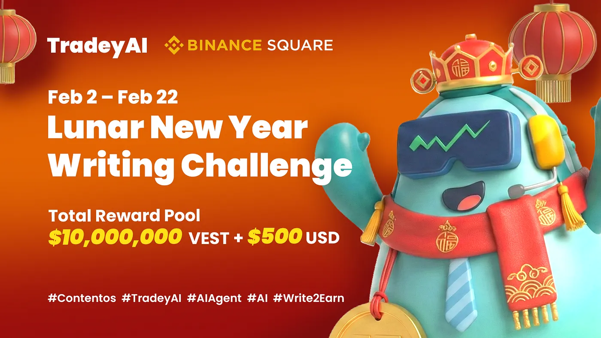 И именно здесь TradeyAI выделяется. В честь празднования Китайского Нового года Contentos запускает 20-дневный писательский челлендж на Binance Square , сочетающий в себе создание контента, анализ торговых стратегий с использованием ИИ и взаимодействие с сообществом. 500 долларов США в токенах $COS 10 000 000 кредитов VEST (срок кредитования 45 дней) 🏅 Структура победителей Для участия в основном пуле необходимо выполнить ВСЕ шаги: 1. Подпишитесь на TradeyAI на Binance Square