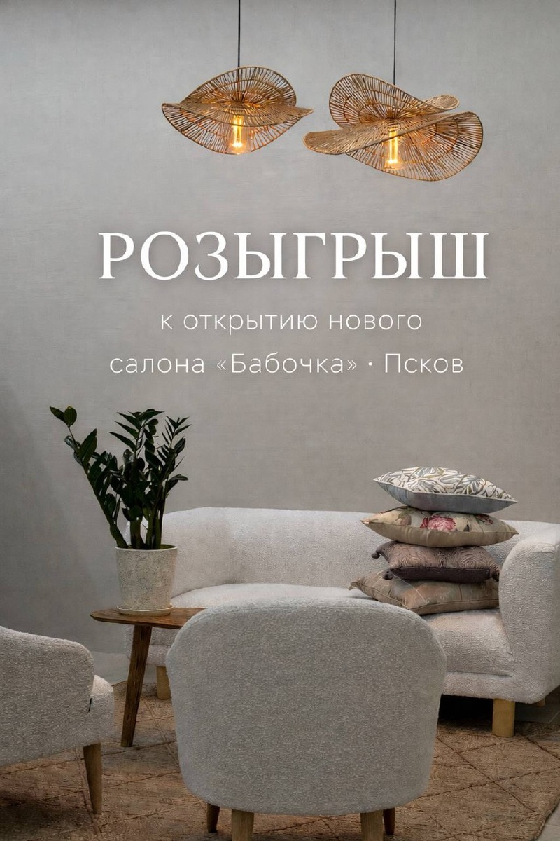 в честь открытия салона «Бабочка» в Пскове 7 числа мы открываем двери нового салона — и решили порадовать вас подарками для дома 🤍 🎁 Сертификат 30 000 ₽ 🎁 Декоративные подушки 🎁 Наволочки из эвкалиптового волокна Tencel Розыгрыш проходит в нашей группе VK — ссылку оставляю ниже ⬇️ https://vk.ru/shtory_pskov_luki Итоги подведём в день открытия, прямо в салоне 🦋