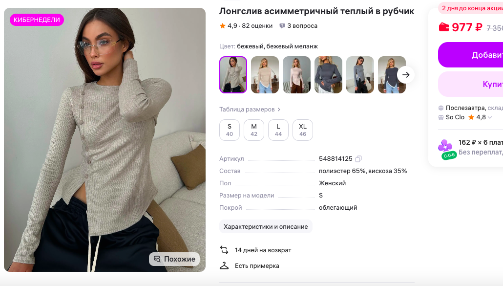 Выбирая базовый лонгслив, обратите внимание на ткань: хлопок или лен обеспечат комфорт и свободу движений. Старайтесь избегать слишком дешевых синтетических тканей, которые плохо сидят и вызывают раздражение кожи.