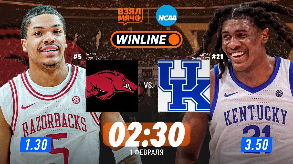 Дариус Акуфф и Джейден Куэйнтанс сойдутся в очной битве топовых проспектов. Энергия, агрессия и желание проявить себя — классическая атмосфера студенческого баскетбола.