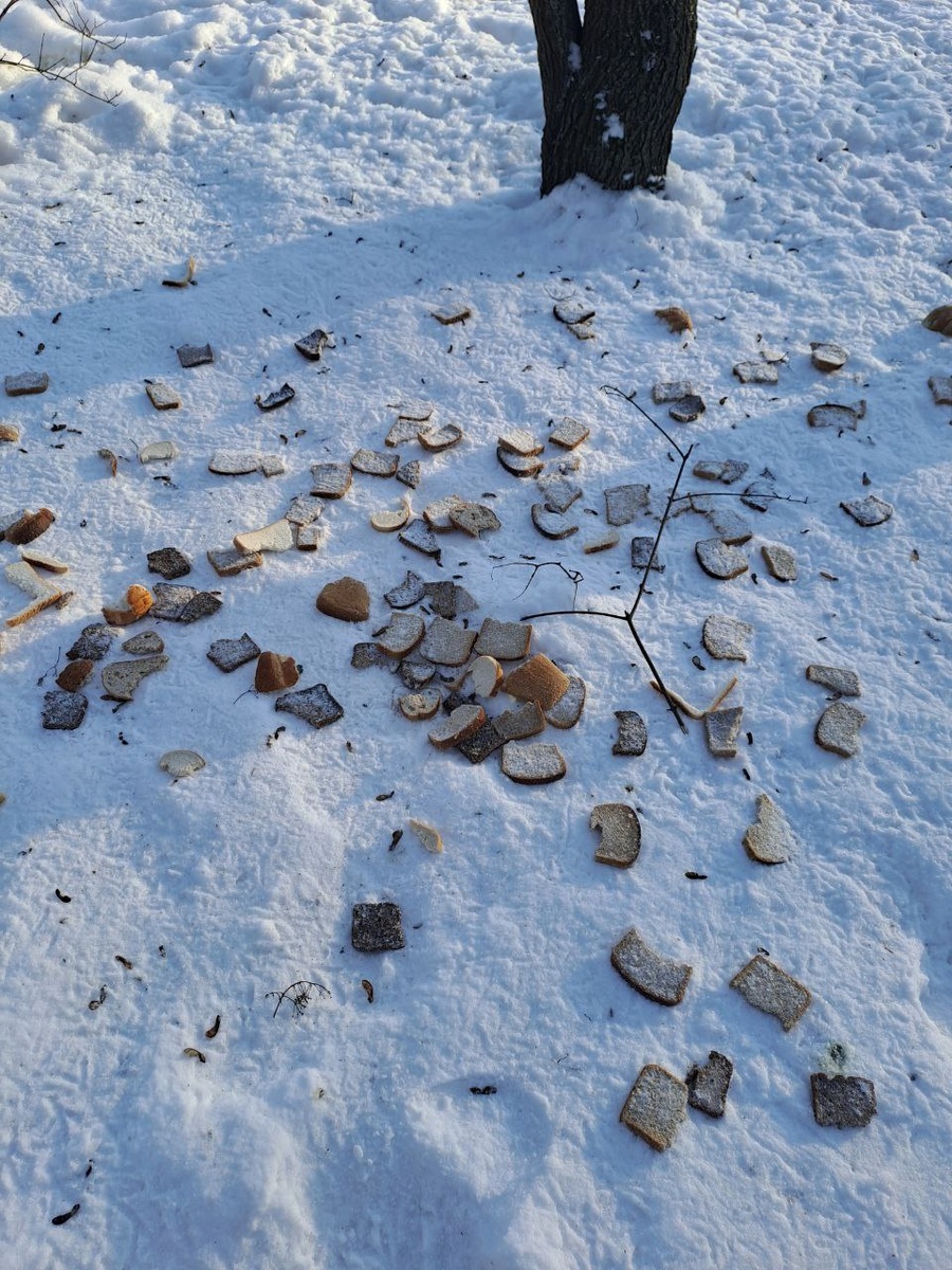 Если ты хочешь сделать птицам хорошо, то узнай как. Если тебе просто некуда выкинуть хлеб, то выкинь в мусорку! Чтобы вы понимали, на это даже голуби не покушаются, а они жрут все, что не приколочено. Баранки - это вообще за гранью. Они в принципе дубовые, а на морозе, скорее всего, вряд ли их кто-то вообще сможет расклевать. Я уверена, что вы у меня сознательные и так птичкам не гадите... 🫰