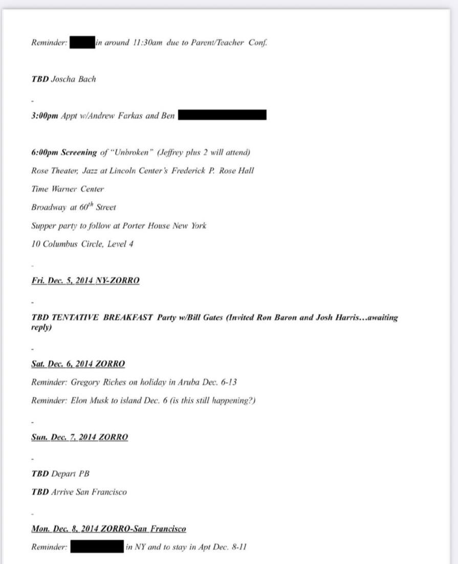 По данным издания Politico, в новых файлах Эпштейна упоминается, что он имел связи с Илоном Маском. Предварительно, бизнесмен ездил на остров Эпштейна 6 декабря 2014 года. В другом документе говорится, что в ноябре 2017 года был запланирован обед с миллиардером Питером Тилем, а в 2019 году — завтрак с исполнительным директором и бывшим главным стратегом Белого дома Стивом Бэнноном. Издание отмечает, что это было за несколько месяцев до того, как Эпштейну предъявили обвинения. В файлах также упоминается завтрак с Биллом Гейтсом в 2014 году и совместная поездка Эпштейна с принцем Эндрю и Гислейн Максвелл. «Каждому американцу должно быть ясно, что Джеффри Эпштейн дружил с некоторыми из самых влиятельных и богатых людей в мире», заявила Сара Герреро, пресс-секретарь Oversight Democrats.