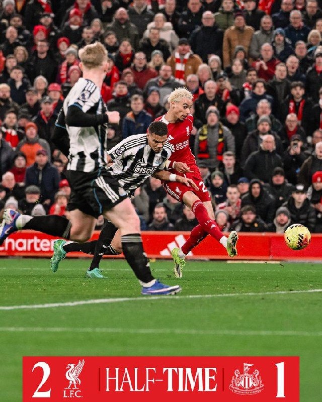 "Ливерпуль" выигрывает первый тайм матча против "Ньюкасла" ⚽️⚽️ - ⚽️