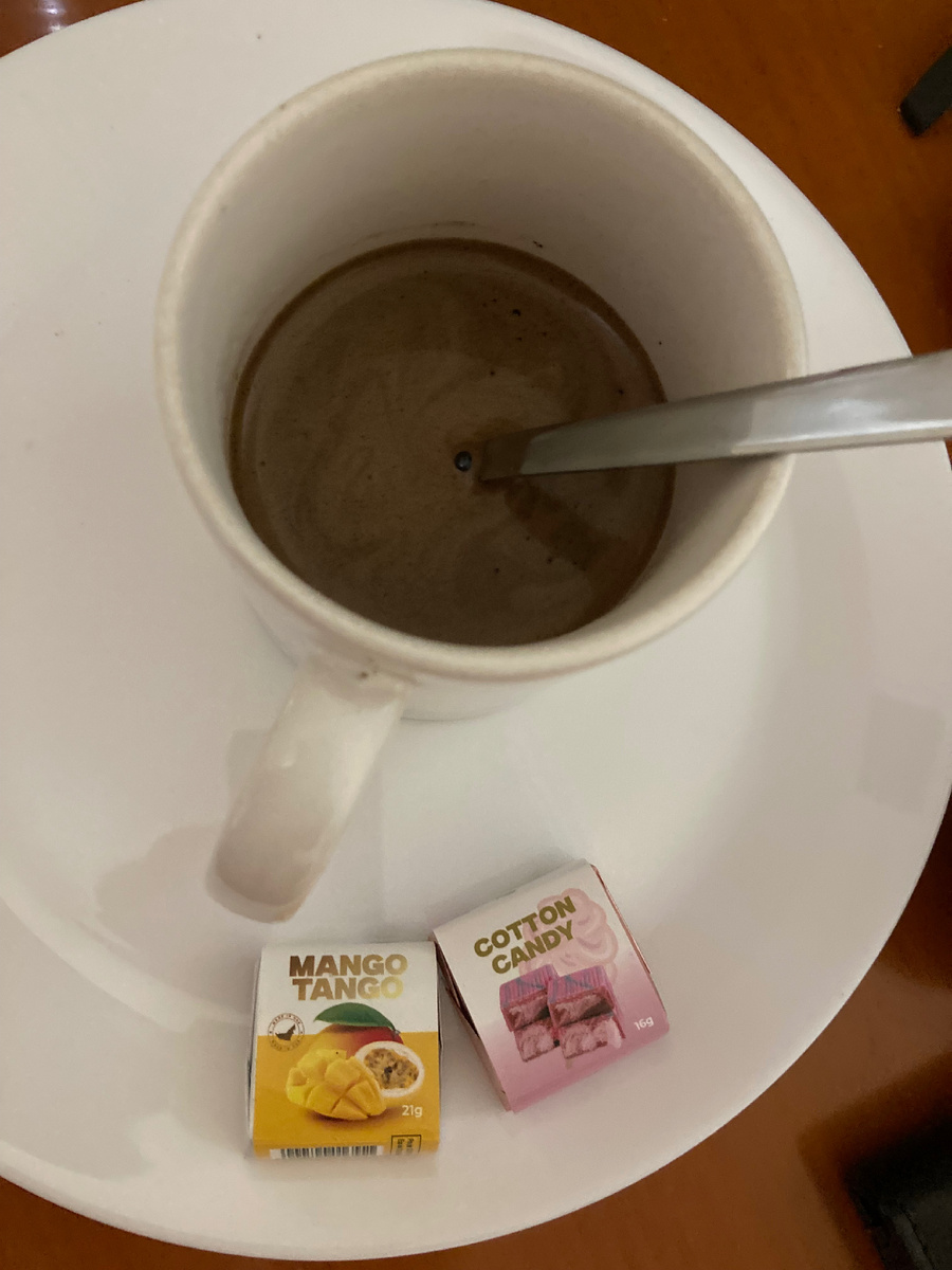 С утра как всегда кофе и дубайский шоколад с манго и розовый, не вкусный лучше не берите такой.