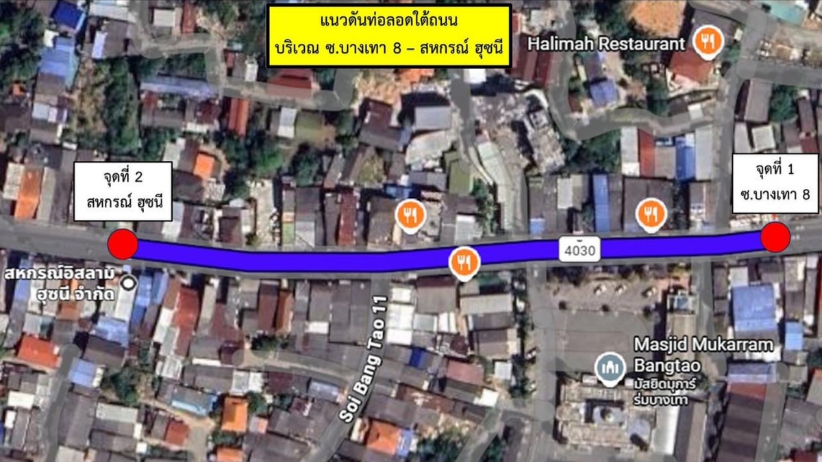 Движение по шоссе Srisoonthorn Rd. на въезде в Банг-Тао со стороны Сурина может стать проблемным не только в дневные, но и в ночные часы. С 1 по 10 февраля на участке трассы у мечети Masjid Mukarram Bang Tao будут проводиться работы на магистральной линии водоснабжения. Административная организация тамбона Чернг-Талей (OrBorTor Cherng Talay) опубликовала уведомление о работах 31 января, за день до старта проекта. Согласно приложенной карте, непосредственно сами работы будут проводиться на участке от въезда на 📍Soi Bang Tao 8 до здания 📍Hosnee Islamic Cooperative. Время проведения работ – с 21:00 вечера до 5:00 утра. «Компания-подрядчик готова строго обеспечивать меры безопасности, регулирование движения транспорта во время работ и восстановление дороги после завершения проекта», – заявила административная организация района Чернг-Талей. Срок работ в 10 дней назван в уведомлении «примерным». Реализовывать проект будет подрядчик World Engineering Service and Supply Co., Ltd. Фото: