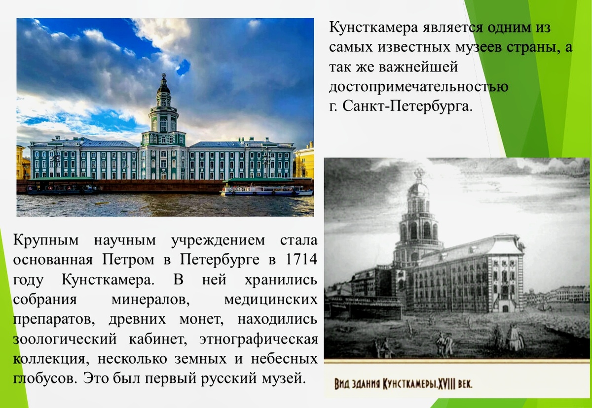 В этот день, 312 лет назад, российскому императору захотелось демонстрировать собранные дивности и он учредил в Летнем дворце «государев Кабинет», впоследствии дополнившийся Петровской Кунсткамерой, в итоге ставший первым российским естественнонаучным музеем. Идея собирать дивности пришла Петру на ум во время «великого посольства» по Европе, где он увидел популярные тогда в Европе кабинеты «кунштов», то есть редкостей и аномалий. Ему так понравились заморские аномалии, что он написал в своём дневнике: «зело дивно!», «Видел у доктора анатомию: вся внутренность разнята разно, — сердце человеческое, лёгкое, почки… Жилы, которые в мозгу живут, — как нитки…». Привезя домой несколько купленных в Европе диковинок, Пётр I образовал коллекцию, для пополнения которой в 1704 году издал Указ «О приносе родившихся уродов, также найденных необыкновенных вещей». Данные редкости оказывали на царя сильнейшее впечатление, из-за чего он не жалел никаких средств на покупку новых коллекционных экземпляров,