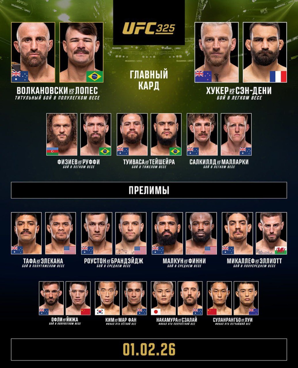В Мельбурне стартовал второй турнир UFC в 2026 году! Ивент постепенно набирает обороты. Но главные бои – ещё впереди. Чтобы не пропустить самое интересное – следи за #UFC325 в онлайн-режиме в приложении Stats Fight. 📲 Скачать Stats Fight: Лига Аналитиков: — AppStore — Google Play