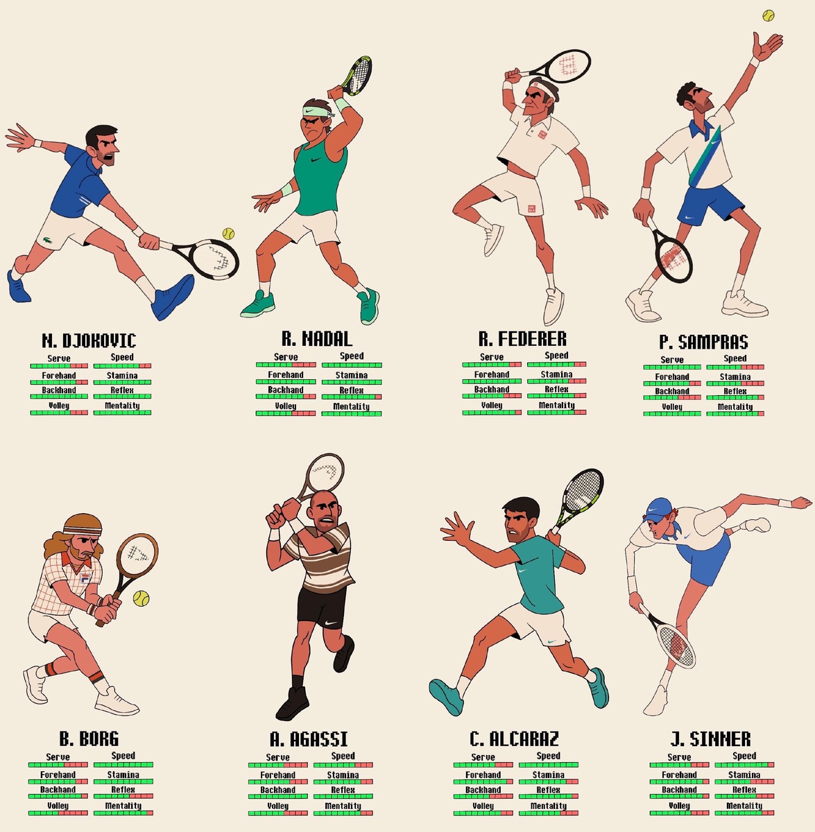 Постер теннисной видеоигры от фаната. За кого будете играть? И какие рейтинги не соответствуют реальности? 🤔