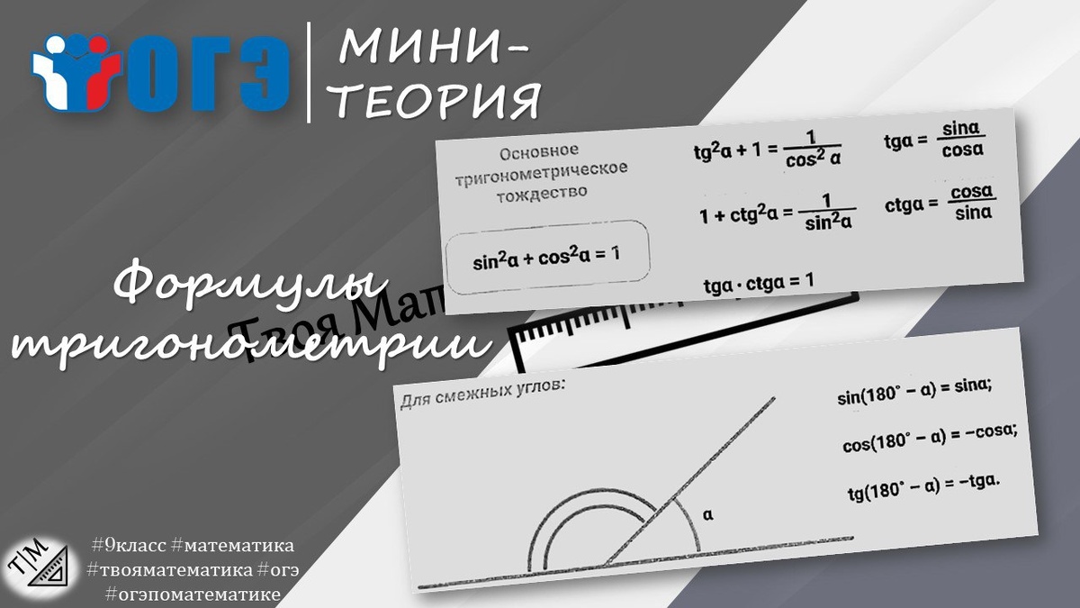 📎Основные формулы тригонометрии нужны для установления связей между тригонометрическими функциями sin, cos, tg, ctg, что позволяет выражать одну функцию через другие, упрощать выражения (например, сводить функции от кратных углов к функциям от одинарного угла), решать уравнения и неравенства, а также вычислять значения функций для нестандартных углов через известные значения для стандартных углов. Твой вектор в мир математики!📐 #9класс #математика #тригонометрия #твояматематика #огэ #огэпоматематике #огэматематика #огэтеория