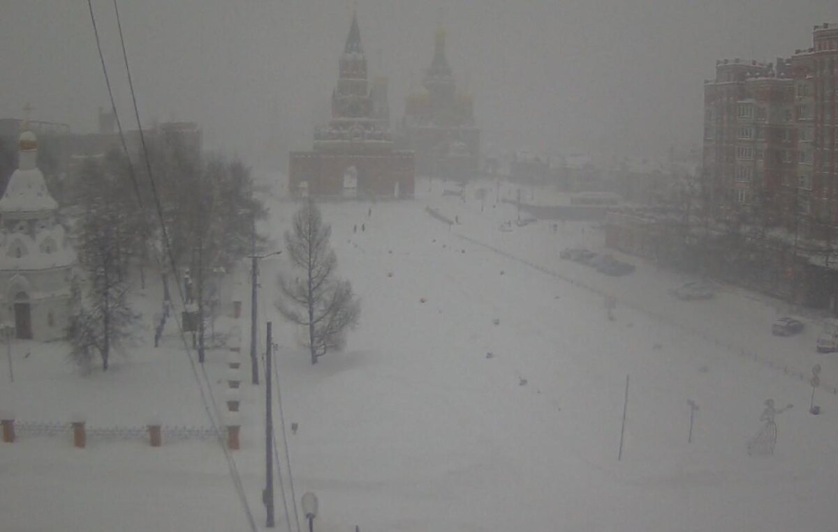 Йошкар-Олу второй день подряд заметает сильный снегопад