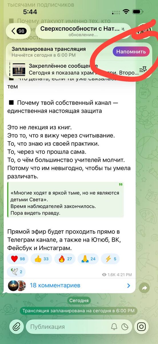 Начинаю прямой эфир через 15 минут. Вход по кнопке (обвела красным на фото)
