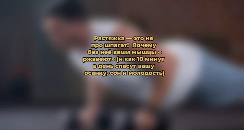 ✨ Лид-крючок: Вы думаете, растяжка — это для йогов и гимнасток? Ошибка! 💥 Это — ваш секретный код к подвижному телу в 50+, лёгкой походке и защите от травм. Раскрываю, почему сидячий образ жизни сжимает вас как пружину 🕷️, и как грамотно «отпустить» её, не сорвав спину.