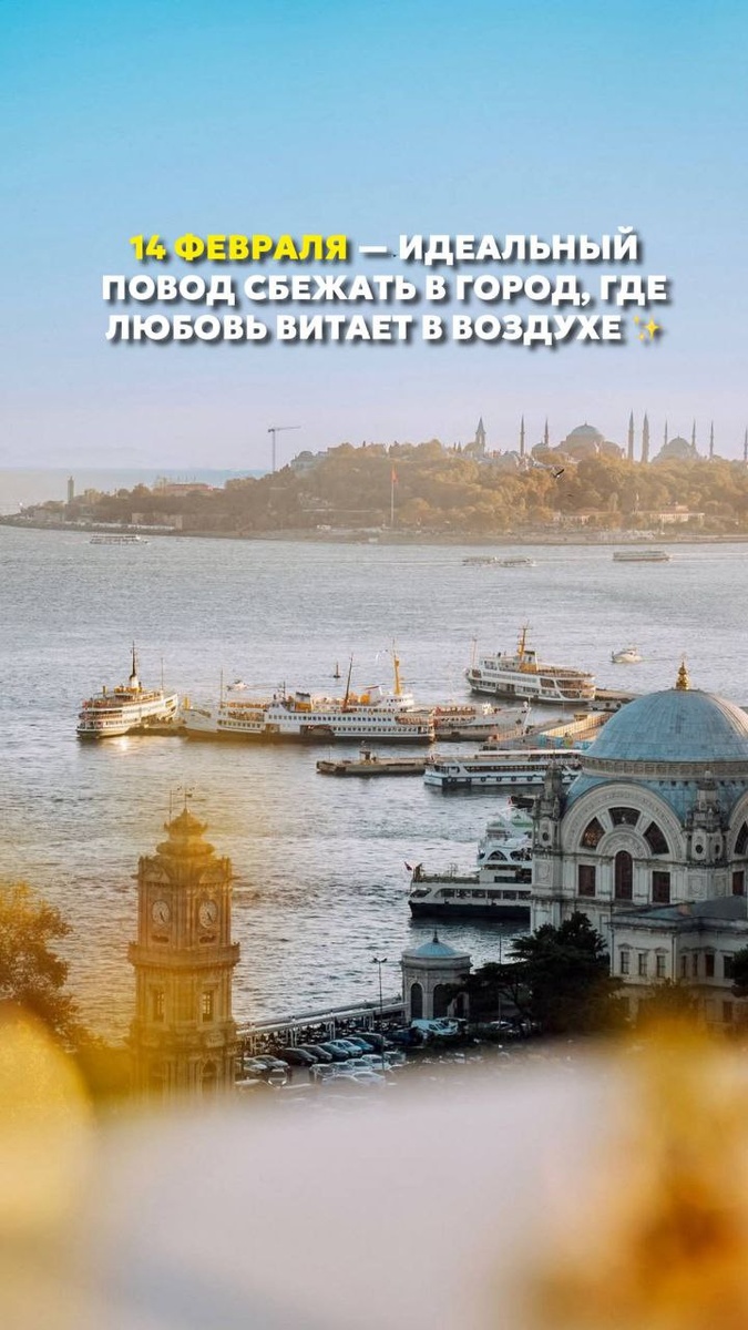 ❤️ Мечтаете о романтике, которая захватывает дух? Представьте: закаты над Босфором, узкие улочки Стамбула, наполненные ароматом специй и кофе… и все это – вместе с любимым человеком! 🇹🇷 Подарите друг другу незабываемое путешествие в Турцию! Всего за 4-5 дней, вы окунетесь в атмосферу сказки, насладитесь восточной кухней и создадите воспоминания, которые согреют вас долгими зимними вечерами. Сегодня в рекомендациях: Eresin Hotels Topkapi 5* Swissotel The Bosphorus 5* ✨ Без визы и переплат! Для подбора тура пишите в WA: https://wa.me/79500455996 Или в ТГ: https://t.me/m/MZk4dBSMM2Iy
