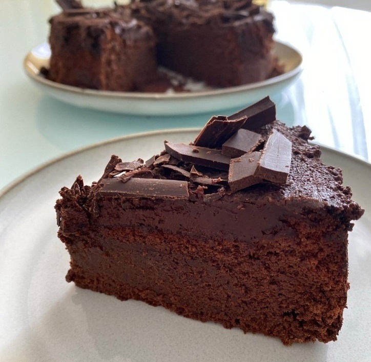 ✔Белки взбейте до тугой пены. Треть вылейте в шоколадную массу. Добавьте остальные белки, растопленное сливочное масло и перемешайте. Выпекайте массу в смазанной маслом разъемной круглой форме при температуре 160 градусов примерно час. Накройте торт влажным пергаментом и оставьте в духовке, пока центр не осядет.