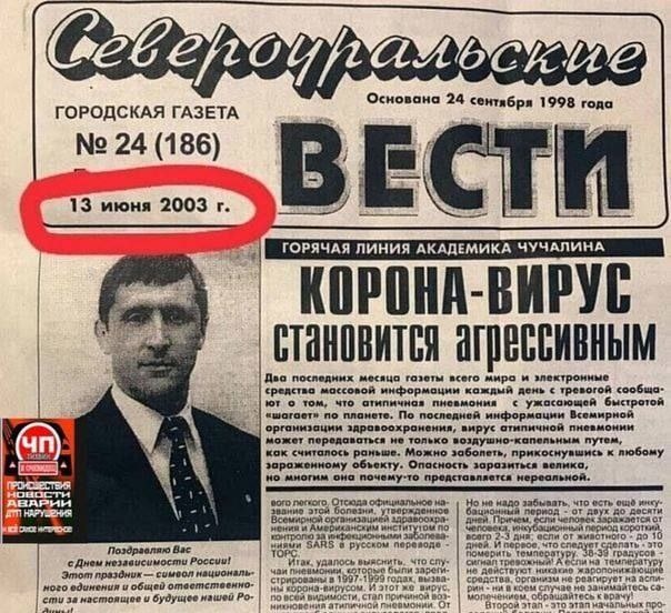 Газета «Североуральские вести» предупредила об угрозе эпидемии корона-вируса в 2003 году.
