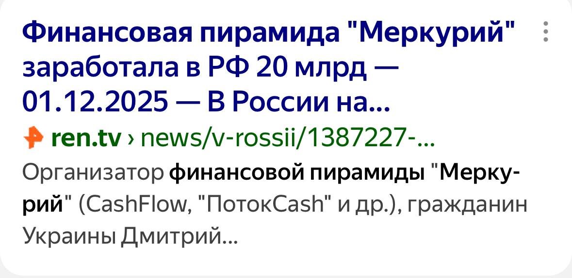 К нам пришел клиент с вложенными 400.000 рублей в пирамиду «Меркурий». Причем вкладывая, знал что это проект подобного рода. Не надо так. Чудес не будет. Не повезет. Не пронесет. Потеряете или всё, или часть. И потом еще вопросы от банка можете схлопотать. Здесь в частности средства собирали граждане Украины - организаторы проекта. ❓Задать вопрос ✔️Подписаться