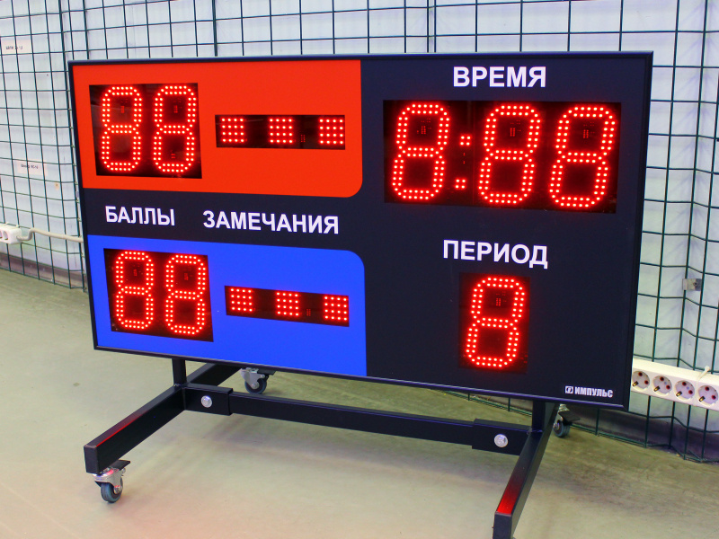 Основные типы табло Универсальные табло - подходят для большинства видов спорта Специализированные табло для конкретных видов спорта: Баскетбол Волейбол Футбол Хоккей Теннис Бокс и единоборства Плавание Легкая атлетика Технические характеристики Размер экрана: от компактных моделей (700х500 мм) до крупных (2000х800 мм) Высота цифр: 100-200 мм Дальность видимости: до 80 метров Тип индикации: светодиодная или механическая перекидная Питание: стандартное 220В/50 Гц Преимущества современных табло Четкое отображение счета и времени Надежность конструкции Длительный срок службы (до 100 000 часов) Низкое энергопотребление Возможность установки защитной решетки Опция мобильной установки (тренога, тележка) Где применяются Спортивные школы и учебные заведения Профессиональные спортивные комплексы Фитнес-центры Спортивные клубы Стадионы и арены Стоимость Цены варьируются от 1600 рублей за простые механические модели до нескольких десятков тысяч рублей за профессиональные светодиодные системы. Дл