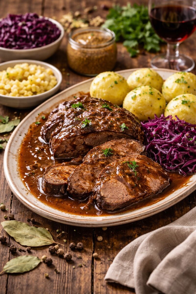 Это мясо которое учит терпению и благодарит за него настоящим вкусом. Во «Вкус мира» мы часто говорим о еде, которая не подстраивается под спешку. Если вам близка кухня со смыслом, историей и глубиной, заглядывайте в наш Telegram-канал «Вкус мира». Там мы делимся именно такими блюдами, без шума и суеты. Зауэрбратен — классика немецкой кухни, которую готовят не «к ужину», а заранее.