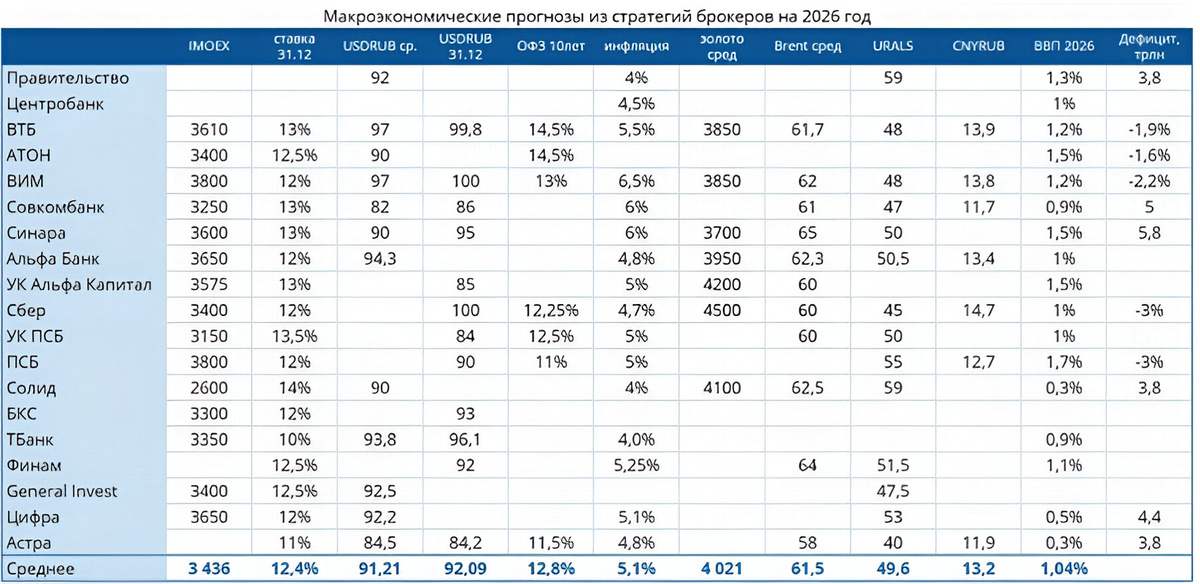 Значение ставки ЦБ и доходность ОФЗ на 10 лет к концу года. Доходность ОФЗ определяет дисконтирование будущих потоков, а чем она ниже, тем благоприятнее для оценки акций. Судьба ставки ЦБ напрямую влияет финансирование компаний и доходность облигаций. Курс доллара к концу года. На весе в индексе — экспортёры и долларовые поступления. Прогнозируемый рост доллара до уровня примерно 92 рубля делает потенциально более оптимистичные расчёты по экспорту и мультипликаторам компаний, входящих в индекс. Оперативный статус СВО (военные действия). Этот фактор остается крупнейшей неизвестной: его развитие может радикально менять бизнес-климат и инвестиционные ожидания. В текущем дискурсе эксперты склоняются к снижению ставки до примерно 12% к концу года, а доллар по диапазону около 92 руб. Это сочетание задаёт направляющую для текущих оценок и сценариев. Прогноз по экономическому росту в 2026 году часто строится на консенсусе: рост примерно +1,1% год к году. Однако консервативное ожидание — нулево