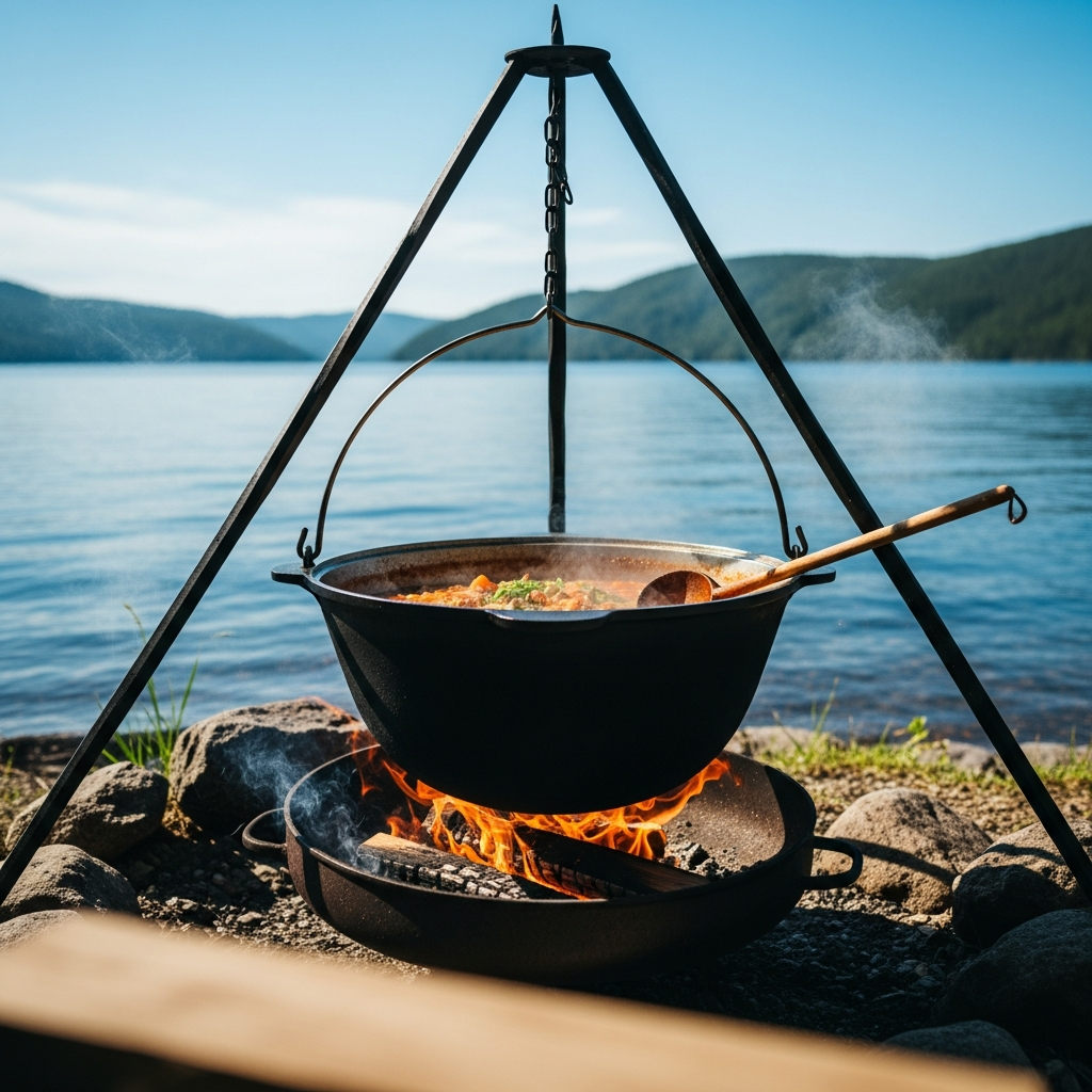 С галушками, шкварками и ароматом костра на берегу озера Время: 3 часа Порции: 10-12 Метод: На огне Сложность: Мастер
