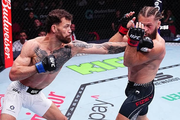 Физиев терпит поражение техническим нокаутом во втором раунде. Руффи закрывает поражение от Бенуа Сен-Дени и поднимается в рейтинге легкого веса UFC данной победой, так как Физиев находился на девятой строчке. 👊 Подпишись на Meta MMA | Meta MMA в MAX | Наш канал в ВК