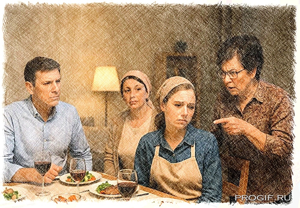 Солнечный свет, просачивавшийся сквозь тяжёлые шёлковые шторы цвета старого портвейна, лежал на полированном столе из красного дерева робкими, пыльными пятнами. Воздух в столовой особняка Морозовых был густ, как кисель, от запахов дорогого жаркого, французских духов и невысказанного напряжения. За столом, уставленным тонким фарфором с позолотой и хрустальными бокалами, сидели несколько человек. Во главе стола, прямая и негнущаяся, как кипарис, восседала хозяйка дома, Надежда Петровна Морозова. Женщина лет шестидесяти, с идеально уложенной сединой, в строгом платье из итальянского шёлка, она смотрела на мир холодными, голубыми, как лёд на реке в декабре, глазами. Её сын, Арсений, сидел напротив, нервно поправляя галстук. А рядом с ним, прижавшись, будто пытаясь стать меньше, незаметнее, сидела его молодая жена, Светлана.