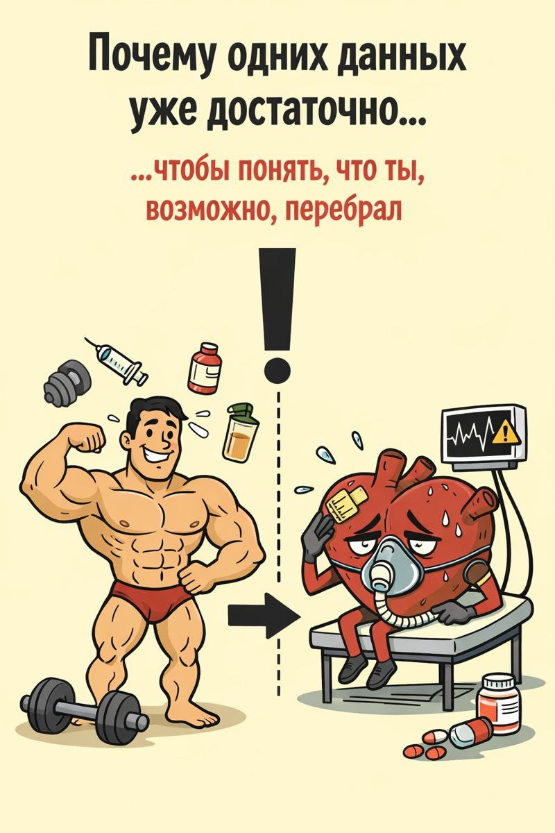 🧠❤️ Почему одних данных уже достаточно, чтобы пересмотреть отношение к бодибилдингу В предыдущем посте я разбирал цифры: смертность, внезапную сердечную смерть, разницу между любителями и профессионалами. Но в European Heart Journal вышел не только сам анализ — к нему опубликован редакционный комментарий, и он важен не меньше самих данных. Потому что он задаёт правильный вопрос: 👉 это серия трагических совпадений — или встроенный риск самого вида спорта? Ответ, увы, становится всё более очевидным. ⚖️ Бодибилдинг — не «просто ещё один спорт» Ключевая мысль редакции проста и жёстка: бодибилдинг уникален тем, что его цель — экстремальное изменение тела, а не спортивный навык или выносливость. Чтобы добиться сцены: • максимальная мышечная масса, • минимальный процент жира, • визуальная «сухость» любой ценой. Это требует не просто тренировок, а крайних физиологических состояний, часто поддерживаемых фармакологией. И именно здесь проходит граница между тренировочной адаптацией и патологие