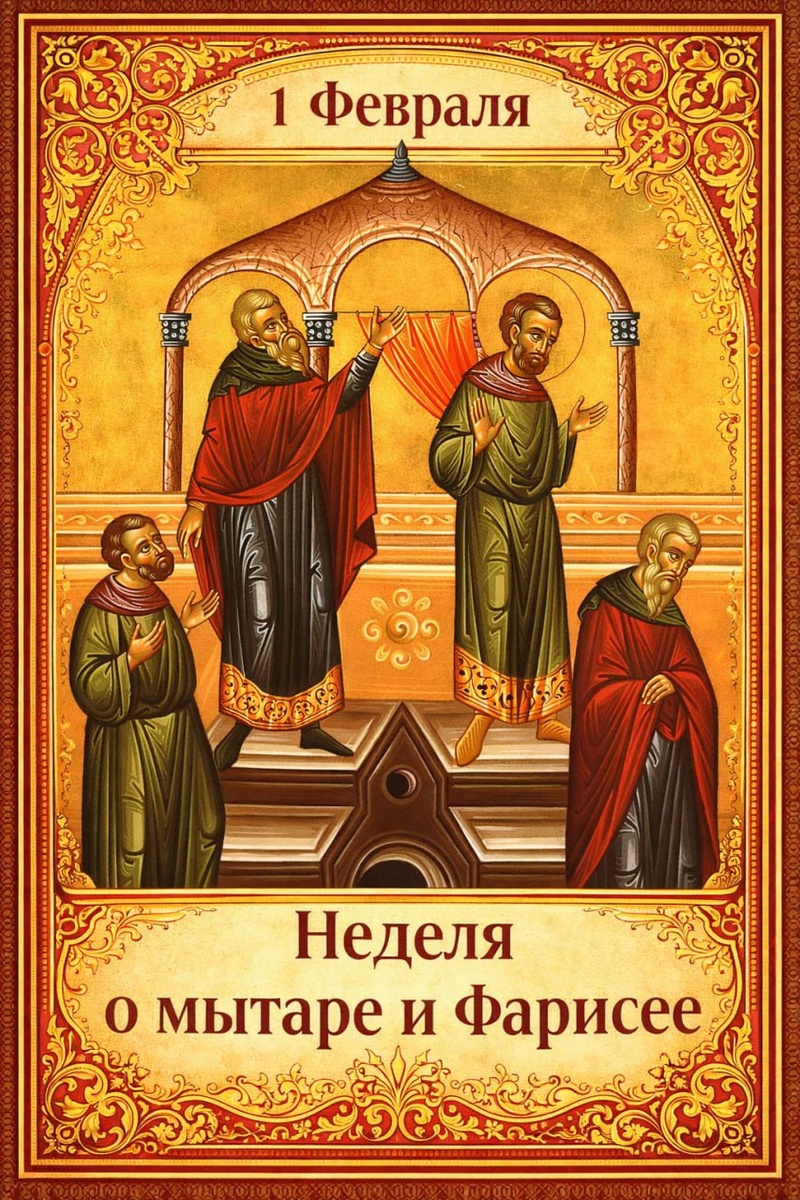 Подготовительные недели установлены Церковью не случайно. Они вводят человека в пост не через внешние ограничения, а через правильное духовное понимание покаяния, спасения и действия благодати Божией. 1. Что означает эта неделя и что она символизирует Неделя о мытаре и фарисее открывает весь путь Великого поста. В центре её евангельская притча, в которой Христос показывает два принципиально разных состояния человеческой души перед Богом. Фарисей внешне исполняет закон, постится, молится, но при этом ставит себя выше других. Мытарь же не оправдывается, не перечисляет добродетели, а стоит перед Богом с сознанием собственной греховности. Тем самым Церковь сразу задаёт главный ориентир: спасение начинается не с дел, а с внутреннего состояния сердца. Святитель Иоанн Златоуст подчёркивает, что гордость способна лишить человека плодов даже самых правильных дел, тогда как смирение делает молитву действенной. Именно поэтому эта неделя не содержит постных ограничений: Церковь учит, что без с