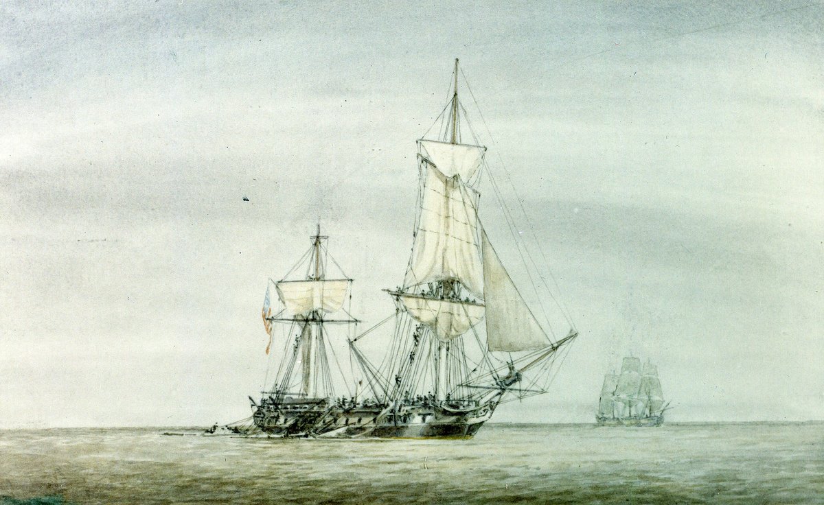 Американские морские пехотинцы с марсов (площадок на мачтах) поливали палубу французов огнем из мушкетов и кидали гранаты. Французы отвечали картечью из своих чудовищных карронад.