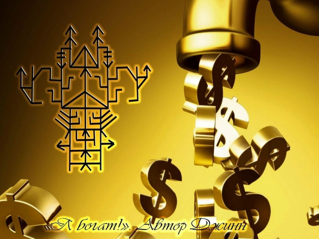 "Данный став своей силой, силой рун и силой Богов откроет мои финансовые дороги и каналы, уберет все блоки и препятствия, которые мешают финансовому потоку поступать ко мне быстро, мягко и гармонично. Данный став сделает мои услуги (мой товар) самым популярным и пользующимся спросом. Данный став устранит всех моих конкурентов, мои услуги (мой товар) затмит их услуги (их товар), люди будут приходить ко мне, пользоваться моими услугами (покупать мой товар) и останутся довольны. Данный став сделает меня богатым, процветающим и финансово-обеспеченным человеком без вреда меня, моего физического, психического и душевного здоровья, без вреда для всего того, что приносит мне пользу и благополучие, без криминала и мошенничества, без неожиданного наследства. Активирую и заряжаю данный став 4-мя стихиями и финансовой энергией зеленой/золотой свечи. Да будет так!".