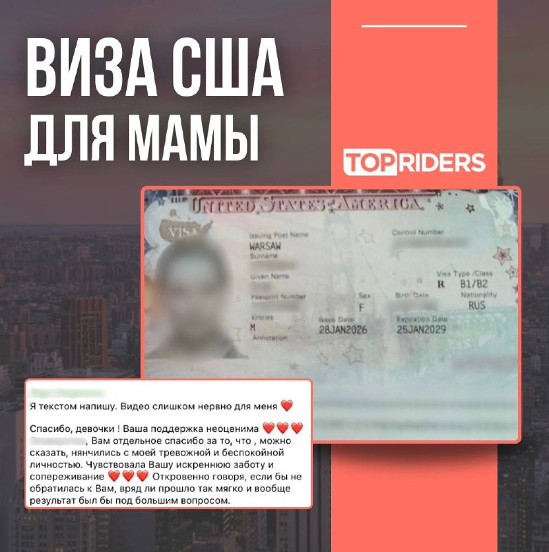 ❤️ Таких кейсов очень много в нашей практике, и мы чувствуем особую ответственность, когда речь идёт о воссоединении семьи. Подробности этого кейса – здесь. Если вам или вашим близким нужны визы США, свяжитесь с нашим специалистом ⬅️ #TOPRIDERS