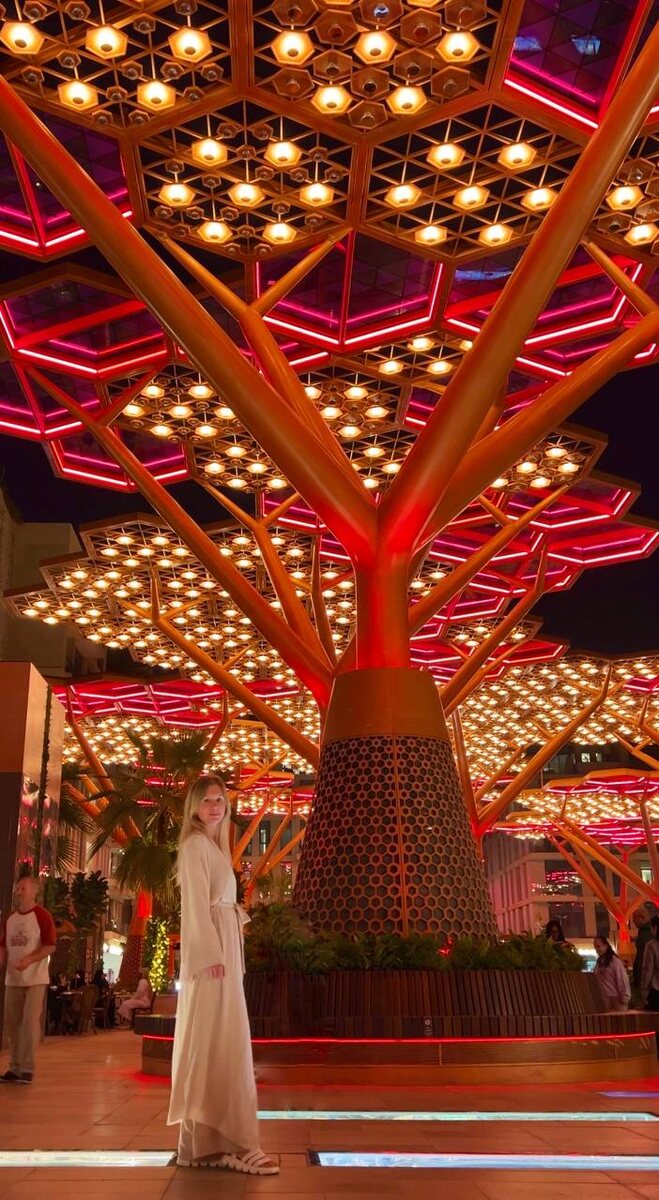 , Qatar 🇶🇦, Doha Самое впечатляющее — пол: 180 блоков на полу под защитным стеклом, выложенных в мини‑картины и абстрактные сцены — пустыня, море, лес, снег. Сначала хочется фотографировать всё подряд, но потом понимаешь, что это не про фото, а про ощущение: смотришь на свет, отражения, детали, и будто находишься внутри самой композиции. Верхняя инсталляция поражает - огромная конструкция над прогулочной зоной, которая меняет цвет. Она создаёт эффект объёма и движения, отражается в кристаллах на полу. Добавим к этому фонтаны, множество кафе и морской воздух — и прогулка превращается в настоящее удовольствие! #together_with_kids_отпуск #together_with_kids_Катар #crystalwalk #gewanisland #doha #qatar