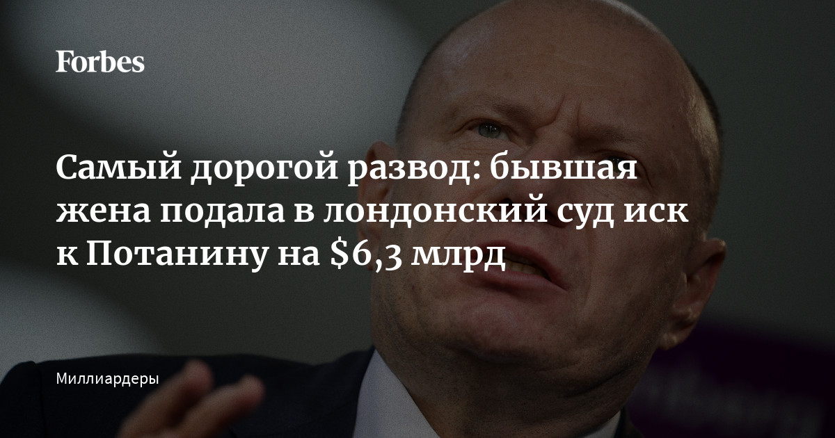 - Многоходовая игра. Её адвокаты подали иск в Высокий суд Лондона, оценив свои претензии в астрономические 5,8 млрд фунтов (около 6,3 млрд долларов). Для защиты Потанин нанял Фиону Шаклтон — звезду британского семейного права, которая ранее вела дело о самом дорогом разводе в истории страны.