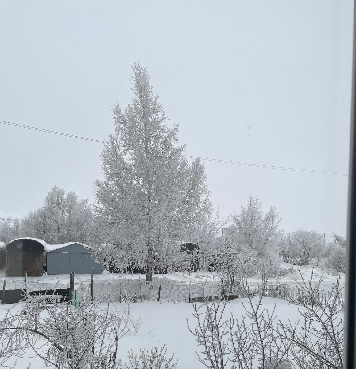 Все в инеи, белоснежный кружак окутал каждую веточку. Стройная береза , посаженная еще 36 лет назад соседом с 5- го этажа красуется под моим окном. В любое время года и в любую погоду мой день начинается с этого вида, с этой березки.