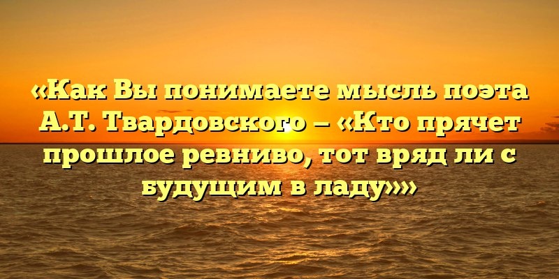 Т. Твардовского — «Кто прячет прошлое ревниво, тот вряд ли с будущим в ладу»» 7 лучших сочинений на тему «Как Вы понимаете мысль поэта А.Т. Твардовского — «Кто прячет прошлое ревниво, тот вряд ли с будущим в ладу»» Публикуем свежие сочинения 2026 года по теме «Как Вы понимаете мысль поэта А.Т. Твардовского — «Кто прячет прошлое ревниво, тот вряд ли с будущим в ладу»». «Как Вы понимаете мысль поэта А.Т. Твардовского — «Кто прячет прошлое ревниво, тот вряд ли с будущим в ладу»»: Вариант 1 Мысль поэта А.Т. Твардовского, что если человек ревниво прячет свое прошлое, то вряд ли ему удастся удачно устроить свое будущее, я согласен с этим. Я считаю, что каждый человек должен честно относиться к своим ошибкам и неудачам, чтобы извлекать из них уроки и… #Сочинения Подробнее: https://2026.obr.prime-name.ru/literatura/sochineniya/kak-vy-ponimaete-mysl-poeta-a-t-tvardovskogo-kto-pryachet-proshloe-revnivo-tot-vryad-li-s-budushhim-v-ladu.html