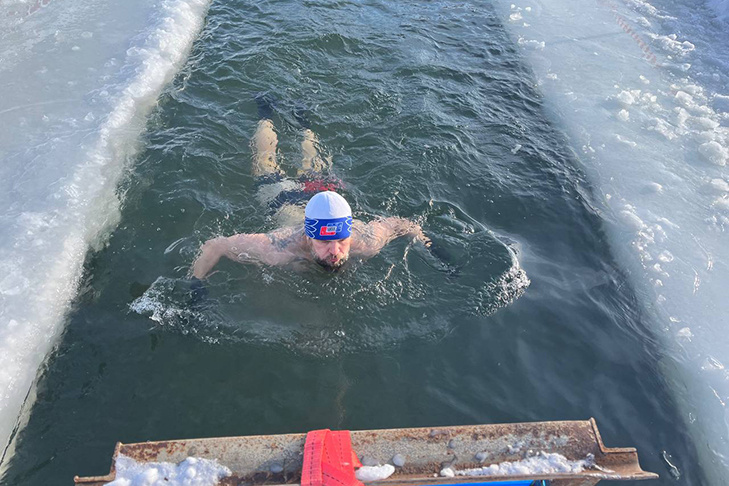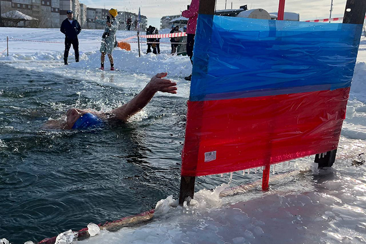 Участники сменяют друг друга по очереди, заходя в воду по несколько раз за смену. Марафон открыл самый юный участник — школьник, который преодолел дистанцию в 50 метров.