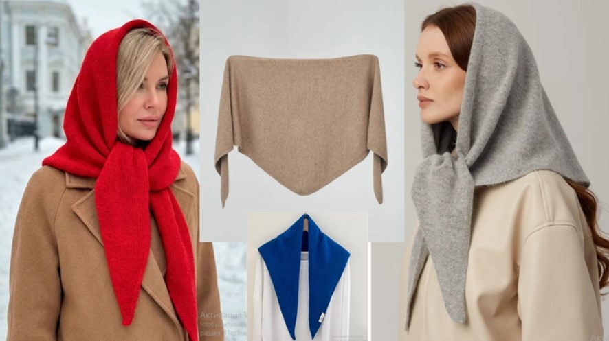 С начала осени хочу связать себе тёплую шерстяную косынку. Начался последний месяц зимы - пора бы уже реализовать своё желание. Перед началом работы я внимательно рассмотрела вязанные женские косынки, предлагаемые маркетплейсами. Разные модели, богатая цветовая палитра, возможность выбора состава пряжи, из которого изготовлен вожделенный аксессуар, соблазняют к покупке. Но приобретать готовое изделие я не стану, потому что рассматриваю изготовление шейного платка как вызов, проверку себе как мастерице. Картинки же с изображением товара служат мне источником информации (размер, обработка края, техническая сторона вязания) и вдохновителем. Все представленные модели выполнены лицевой вязкой. Обратила внимание на размер косынки и внимательно изучила изображения с точки зрения обработки края изделия. На этих моделях край обработан полым шнуром. Предполагаю, что этот способ окантовки практичен, не даёт деформироваться уголкам. Есть и другой способ обработки длинного прямой стороны - резинк