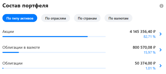 В целом на данный момент в портфеле: