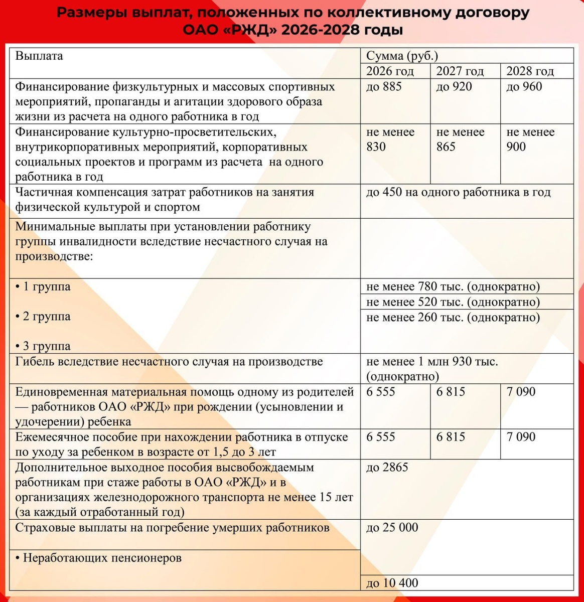 🟥 🚉 В новом Коллективном договоре ОАО «РЖД» на 2026–2028 годы сохранены все традиционные льготы и гарантии, которые действуют сегодня для