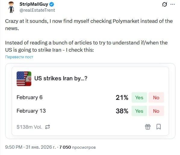 Как бы безумно это ни звучало, теперь я ловлю себя на том, что проверяю Polymarket вместо новостей.