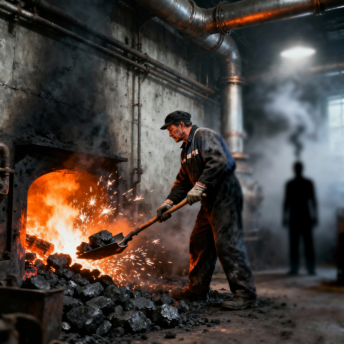 Дверь в топочную была приоткрыта — большой железный люк на петлях. Внутри пахло гарью, угольной пылью и чем-то затхлым, пещерным. Кочегар Петрович, вечно пьяный ворчун, в этот день отметил получку и спал мертвецким сном в своей конуре-подсобке. Его храп доносился из-за двери — булькающий, неровный.