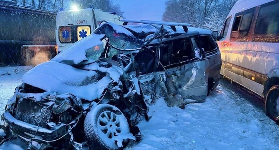 В Мокшанском районе Пензенской области на трассе «М5 Урал» столкнулись сразу три автомобиля: Toyota Estima, фургон «Газ» и грузовик «Камаз», в результате аварии погибли два пассажира иномарки, ещё шестеро участников ДТП отделались.