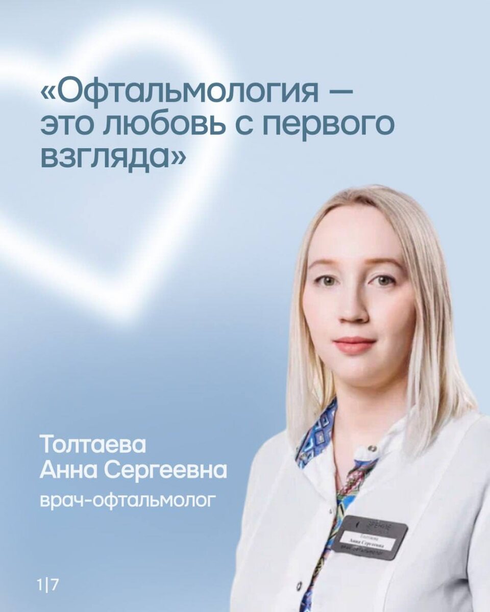 ? В карточках наш врач-офтальмолог Толтаева Анна Сергеевна поделилась тем, как пришла в мир офтальмологии, рассказала о работе с пациентами и немного не по протоколу, показала один из любимых мемов и то, чем живет вне кабинета. Листайте аккуратно, может появиться желание записаться 🥰 ✨ Записаться на прием к Анне Сергеевне можно на сайте или по телефону +7 (812) 603 86 05