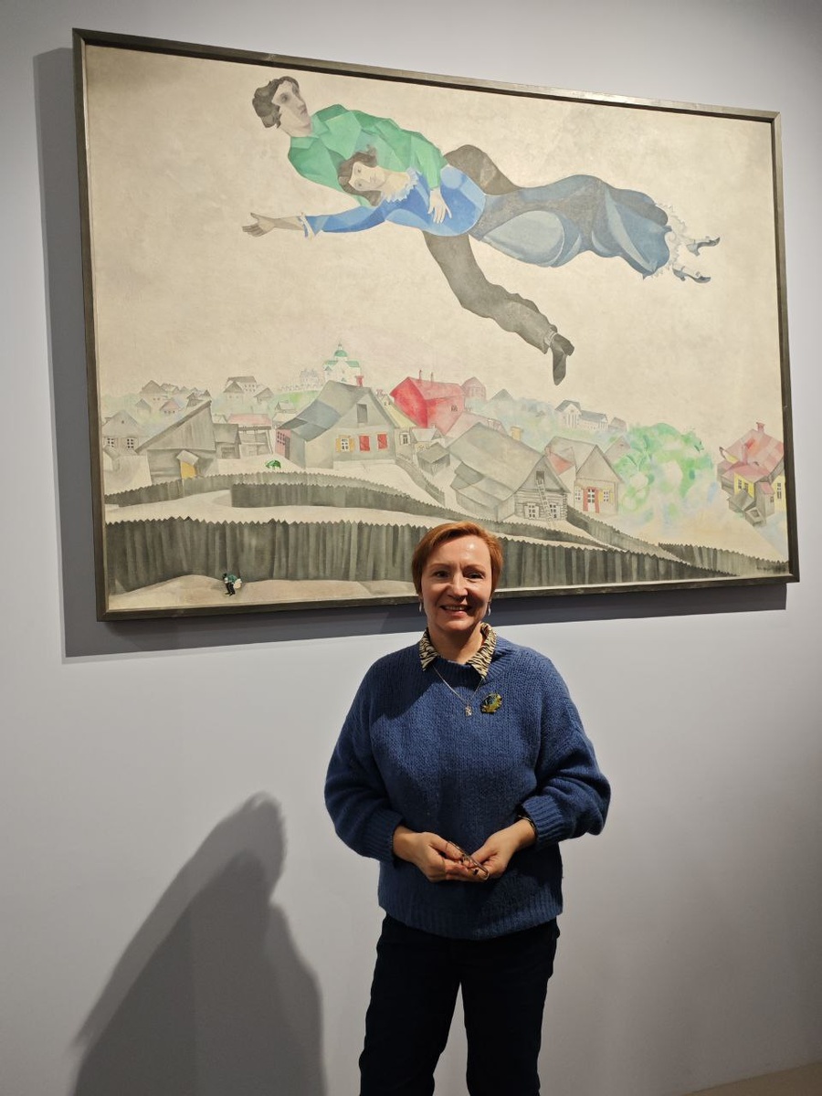 В Москве проходит выставка Шагала. Билеты раскупают как горячие пирожки. Вот и я сходила, да не одна, а в компании в прекрасной Ксенией - экскурсоводом и организатором творческих встреч и посиделок. Какие события в жизни Шагала повлияли на то, что он не сомневался в себе как в художнике, несмотря на критику и тот факт, что Малевич переманил всех его учеников? Вот один из них. Шагал родился в Витебске в бедной еврейской семье, в которой было 9 детей! И с детства рисовал. Родители хотели, чтобы он стал юристом или на худой конец фотографом. Но не запрещали рисовать, хотя сестры его рисунками могли протереть пол. Быть художником не считалось в семье достойным занятием. Несмотря на это отец кинул ему под стол 27 рублей, чтобы юный Шагал мог поехать в Петербург заниматься живописью. В своей автобиографии Шагал вспоминал об этом: "Слёзы и гордость душили меня, когда я подбирал с пола деньги — отец швырнул их под стол. Ползал и подбирал. На отцовские расспросы я, заикаясь, отвечал, что хо