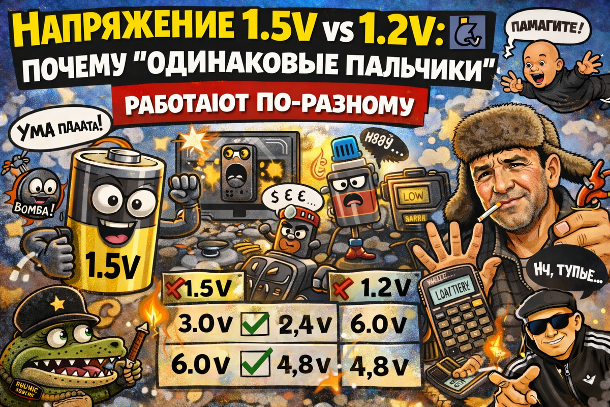 - Думают, что “написано 1.2V — значит слабый” и выкидывают нормальные аккумуляторы.