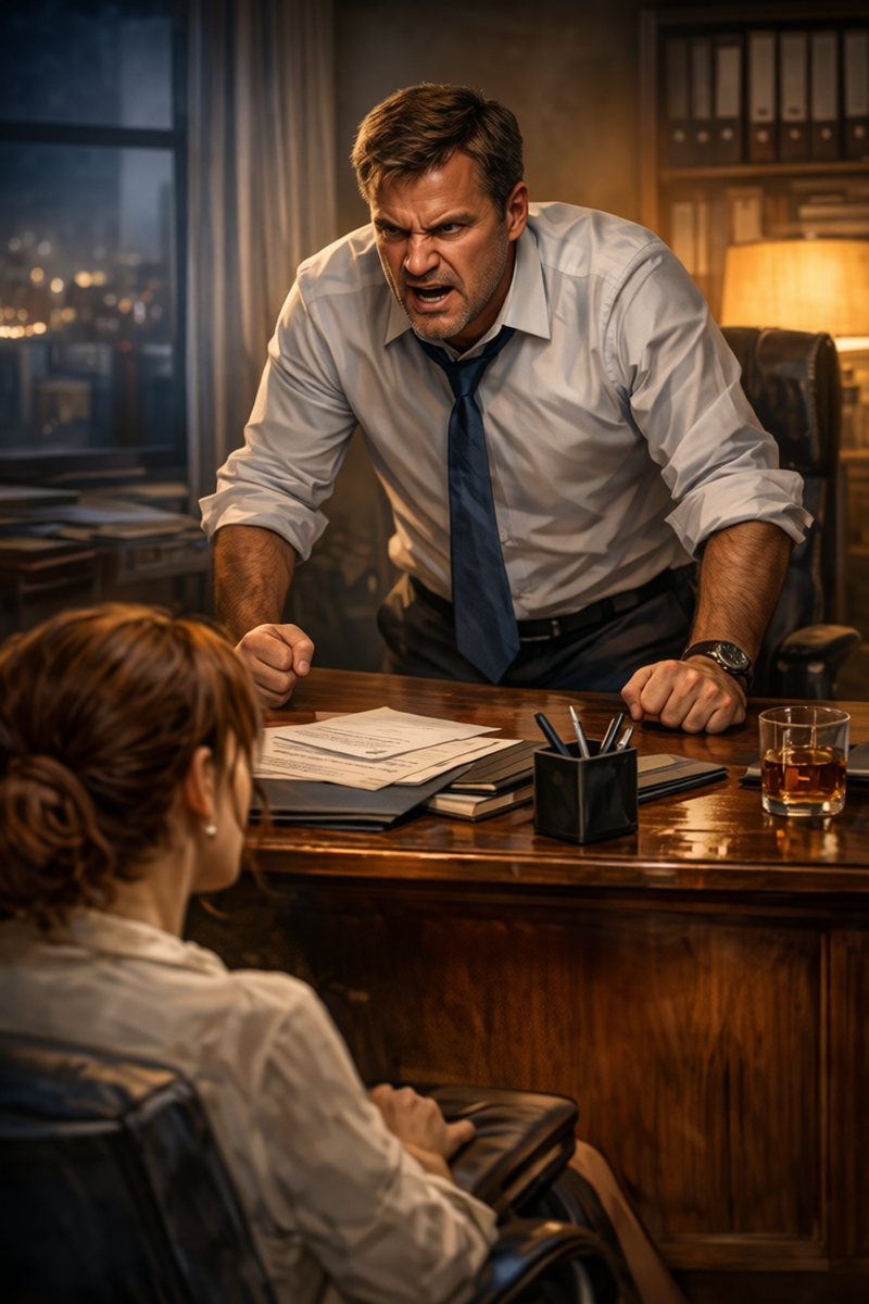 Он не кричал. Вместо этого рычал. Низкий, животный звук, от которого кровь стыла в жилах. Он ударил кулаком по столу – не для устрашения, а от бессильной злости. Гулкий удар заставил вздрогнуть не только предметы на столе, но и, казалось, самые стены кабинета. Я инстинктивно отпрянула, пульс участился, но ноги не подались, не побежали к двери. Осталась сидеть, впиваясь пальцами в край стула, чувствуя, как дрожь проходит по всему телу, но внутри, в самой глубине, оставалась твёрдая, ледяная точка спокойствия.