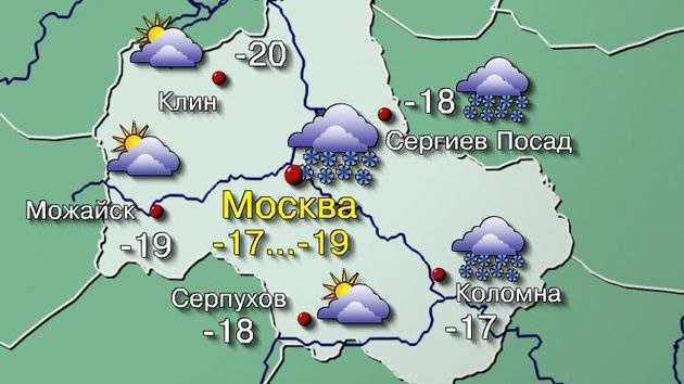 Сегодня синоптическая ситуация в столице будет формироваться под влиянием западной периферии циклона, выходящего своим центром с юга в районы Средней Волги. В регионе ожидается облачная погода, пройдёт небольшой снег. Сегодняшние сутки станут самыми холодными с начала нынешней зимы. Температура воздуха в городе -17…-19°, по области -16…-21°. Ветер северный 4-9 м/с. Атмосферное давление будет падать и составит 745 мм рт. ст., что немного ниже нормы. В понедельник небольшой снег, ночью -19…-21°, днём –14…-16°. Центр ФОБОС «Мой Реутов» в MAX: https://max.ru/reutov_today