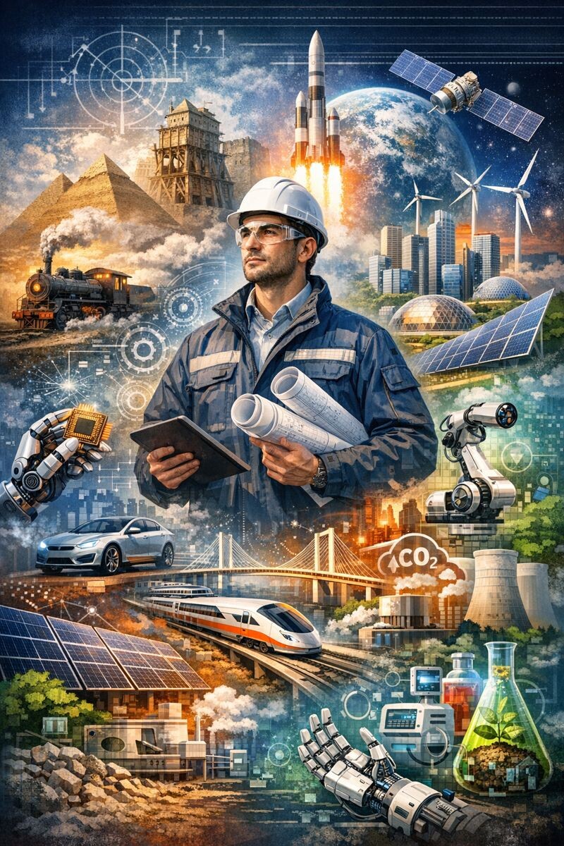 Инженерия — это практическая отрасль науки и техники, объединяющая различные специализации. Её цель — преобразовывать природные ресурсы и научные знания в полезные для общества технологии, решения и инфраструктуру, учитывая экономические и социальные аспекты. Зародившись на стройплощадках Египта и Месопотамии, получив имя от средневековых военных инженеров, она пережила взрывное развитие в эпоху пара и стали. Каждая новая волна технологий — электричество, двигатель внутреннего сгорания, цифровизация — расширяла её границы.