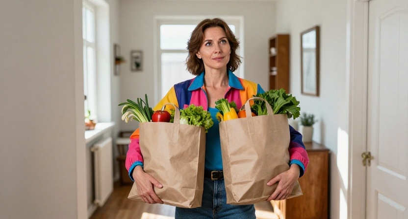 Он открыл. Лена стояла, с пакетами, вся такая “деловая забота”: шапка на затылке, губы подкрашены, взгляд бегает по прихожей, будто на показ квартиры пришла. В руках — два огромных пакета, один с продуктами, второй — неизвестно с чем, но тяжёлый.