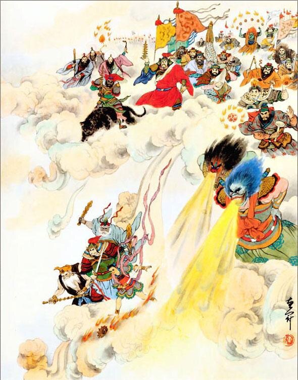 Оказалось, что это чудище, похожее на кабана, на самом деле было когда-то небесным полководцем Чжу Бацзе на Млечном Пути. Однажды он немного выпил и пошутил с богиней луны, за что Нефритовый император приказал всыпать ему две тысячи ударов и изгнать на землю, где он воплотился в свинообразное существо. И это чудище было тоже обращено в монашество и получило имя Чжу У-нэн – Свинья, постигающая человеческие способности. Ему было велено жить в праведности и ожидать прибытия паломника, который отправится за священными книгами.